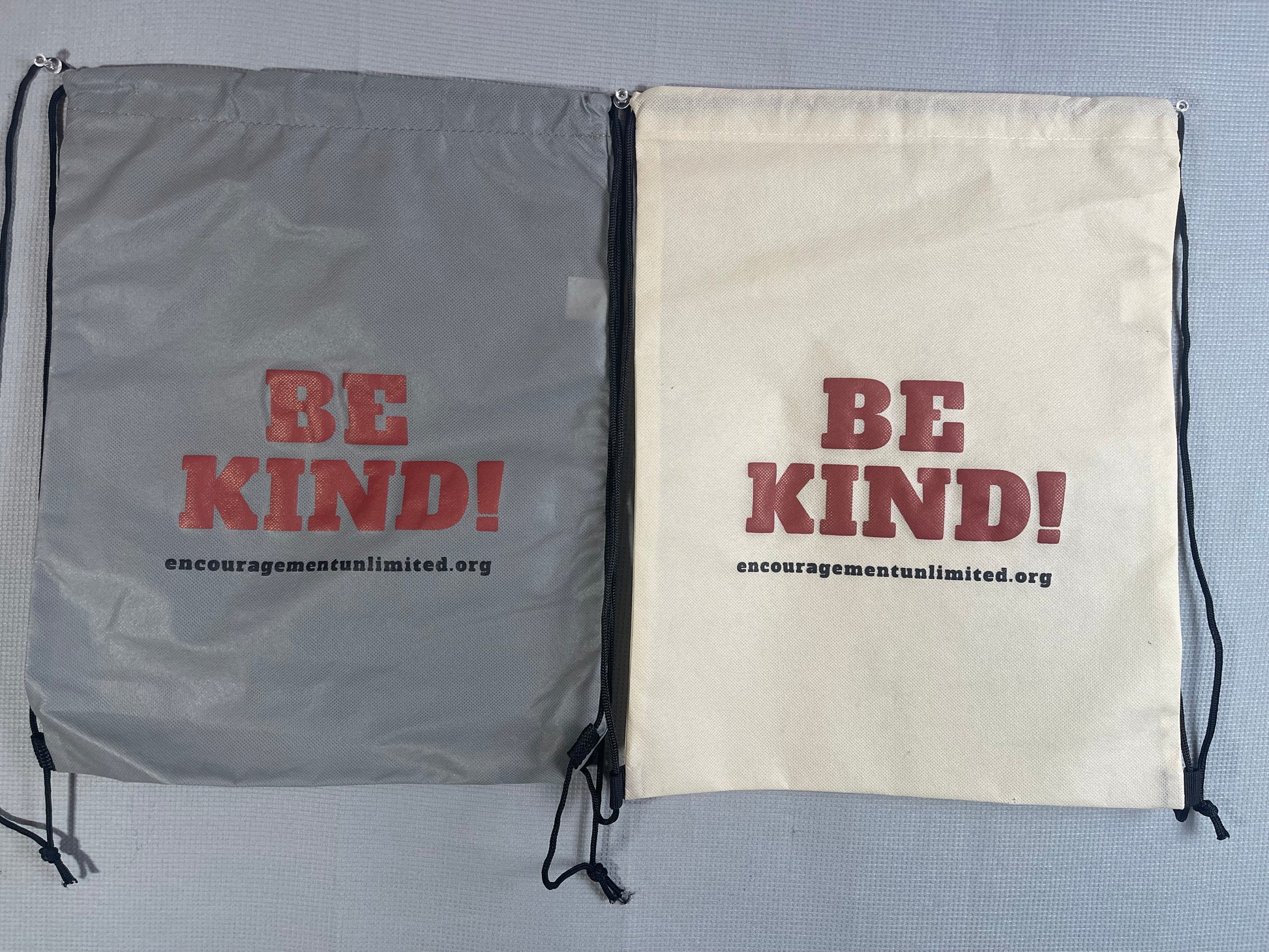 Get these awesome drawstring bags with our “BE KIND” message. We have two colors GRAY AND OFF- WHITE.